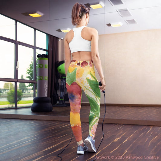 Watercolour Red Flowers Yoga Leggings